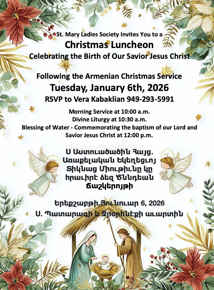 At St. Mary Armenian Church, celebrating on January 6th connects us to our apostolic heritage, reminding us that faith transcends time and calendars. It's an invitation to experience the Light of Christ anew—whether through the solemn Badarak (Divine Liturgy), the blessing of water distributed to parishioners, or gathering with loved ones for a festive meal.