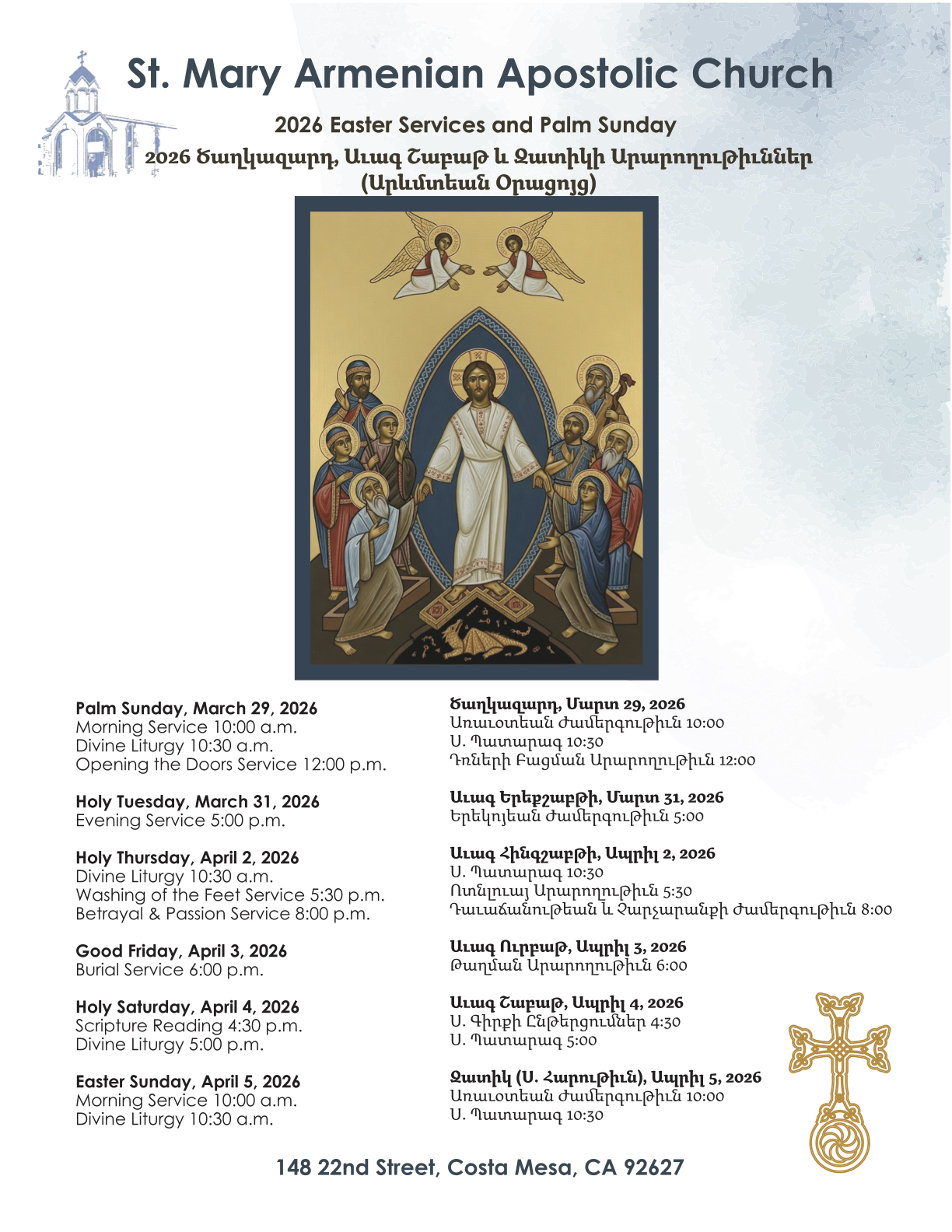 - By mail: St. Mary Armenian Apostolic Church, 148 22nd Street, Costa Mesa, CA 92627